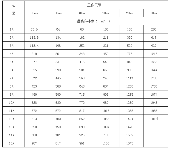 2.3、磁場(chǎng)強度:  H≥2T,工作氣隙10mm時(shí)