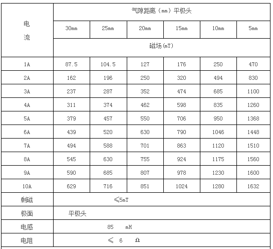 剩 磁:5mT(氣隙10毫米)